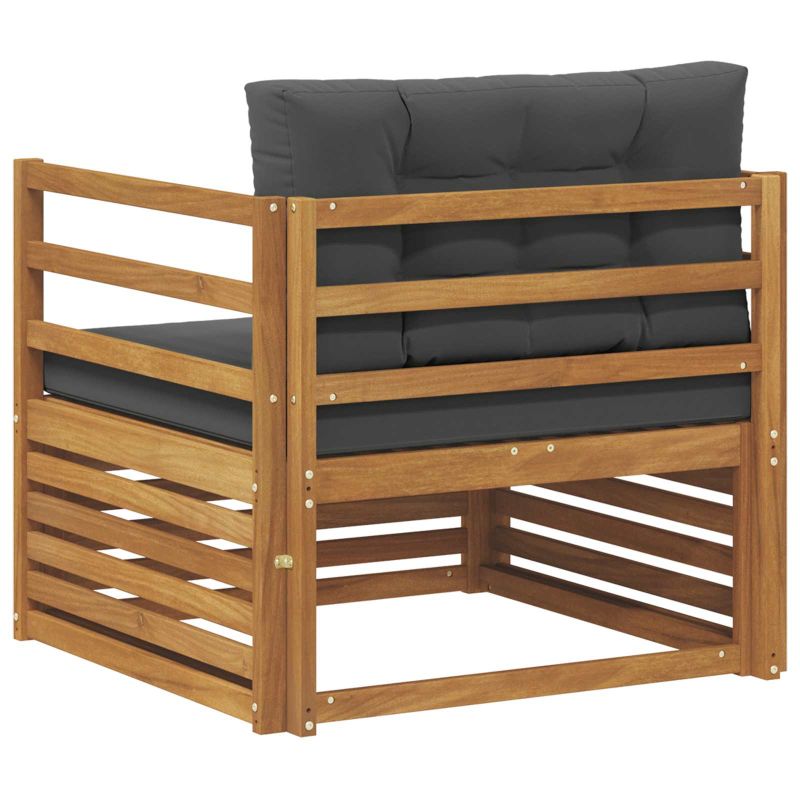 Комплектът мебели за открито е комбинация от стил и функция, което го прави идеален център за всяка градина или тераса. С модерен design, определен от чисти линии и минималистичен вид, той носи елегантност, докато осигурява комфорт на открито и социални срещи. Направен е изцяло от масивна акациева дървесина, което гарантира дълготрайност и визуална привлекателност, перфектен избор за тези, които търсят практичност и стил в откритите мебели. Издръжлива масивна акациева дървесина: Комплектът мебели е открито създаден от здраво акациев дърво, което осигурява надеждност и устойчивост на времето. Структурата предоставя стабилност, а естественият тон внася уют в всяка градина или тераса. Устойчив на климатични условия: Лаковата повърхност на комплекта предлага допълнителна защита срещу слънце и дъжд, като запазва иначе добрия вид и функционалност, осигурявайки дълготрайност за вашето открито пространство. Компоненти и дизайн: Всеки детайл, от подлакътниците до облегалките, е създаден с внимание към комфорт и стил. Подкрепящите функции осигуряват допълнително удобство, а дизайна визуално свързва всичко на едно място, перфектно за различни открити събития. Комфорт и многофункционалност: Модулният дизайн позволява разнообразие в конфигурациите, които лесно могат да се приспособят към нуждите на различни пространства. Идеален за почивка, социални събирания и момент на четене. Комплектът се приспособява добре към всяка открита среда и максимизира комфорта. Лесна поддръжка: За да запазите мебелите красиви, почиствайте с влажна кърпа и избягвайте агресивни препарати. Редовната грижа помага за поддържането на добрия вид и удължава живота на комплекта.