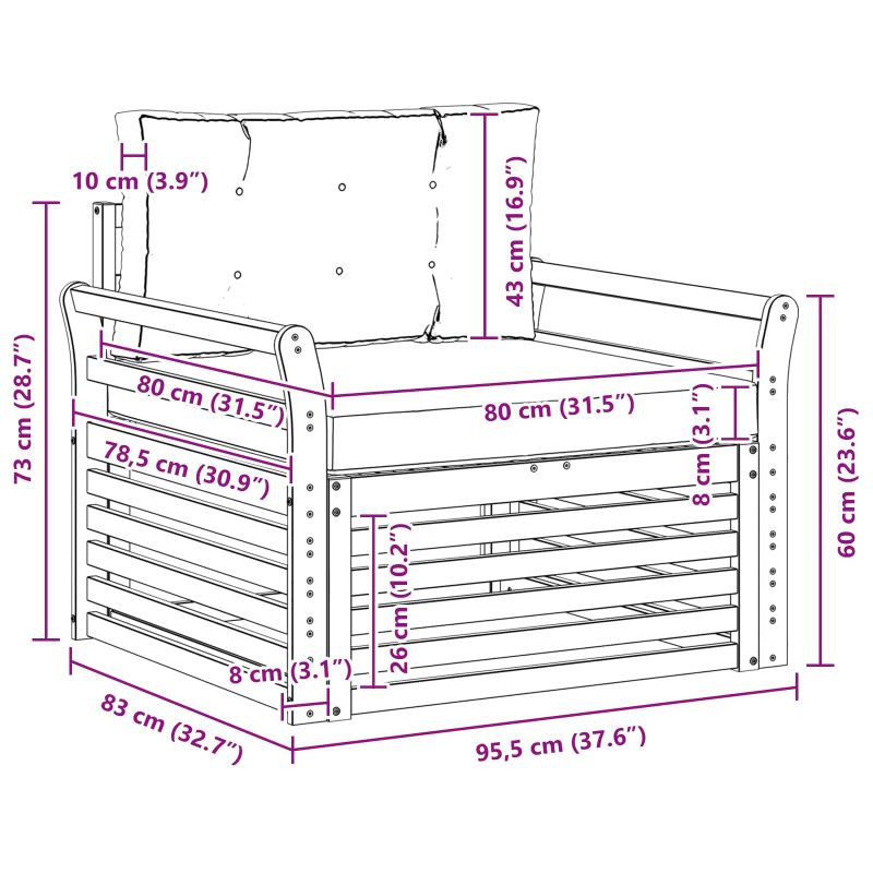 • 1 x Среден Диван: 79 x 83 x 73 см (Д x Ш x В)
