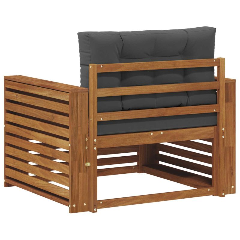 Комплектът мебели за открито е комбинация от стил и функция, което го прави идеален център за всяка градина или тераса. С модерен design, определен от чисти линии и минималистичен вид, той носи елегантност, докато осигурява комфорт на открито и социални срещи. Направен е изцяло от масивна акациева дървесина, което гарантира дълготрайност и визуална привлекателност, перфектен избор за тези, които търсят практичност и стил в откритите мебели. Издръжлива масивна акациева дървесина: Комплектът мебели е открито създаден от здраво акациев дърво, което осигурява надеждност и устойчивост на времето. Структурата предоставя стабилност, а естественият тон внася уют в всяка градина или тераса. Устойчив на климатични условия: Лаковата повърхност на комплекта предлага допълнителна защита срещу слънце и дъжд, като запазва иначе добрия вид и функционалност, осигурявайки дълготрайност за вашето открито пространство. Компоненти и дизайн: Всеки детайл, от подлакътниците до облегалките, е създаден с внимание към комфорт и стил. Подкрепящите функции осигуряват допълнително удобство, а дизайна визуално свързва всичко на едно място, перфектно за различни открити събития. Комфорт и многофункционалност: Модулният дизайн позволява разнообразие в конфигурациите, които лесно могат да се приспособят към нуждите на различни пространства. Идеален за почивка, социални събирания и момент на четене. Комплектът се приспособява добре към всяка открита среда и максимизира комфорта. Лесна поддръжка: За да запазите мебелите красиви, почиствайте с влажна кърпа и избягвайте агресивни препарати. Редовната грижа помага за поддържането на добрия вид и удължава живота на комплекта.