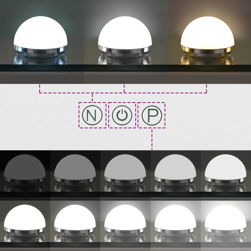 Това LED огледало за грим е идеално за всяка спалня или стая за грим. С правоъгълна форма и стилен дизайн, то е впечатляваща част, която е чудесна за гримиране или ежедневния ви рутинен грижа. Изработено от стоманени и стъклени материали, огледалото е луксозно и предлага отлична яснота – чудесно за хора, които ценят точността и стила. Стабилен и устойчив дизайн: С ясно стъкло и прахово боядисана стоманена основа, това огледало съчетава елегантност и стабилност. Безизкривено стъкло дава точно отражение, а основата е стабилна, за да държи огледалото сигурно при употреба. 3 режима на осветление и регулируема яркост: С 3 режима на осветление - студена, естествена и топла светлина - и три нива на димируемост, можете сами да настроите осветлението за вашите нужди при гримиране. Умен сензорен контрол и нескользяща подложка: Огледалото разполага с интуитивен сензорен панел с три бутона: докоснете, за да включите/изключите осветлението, натиснете , за смяна на режима на осветление, и задръжте , за настройка на яркостта. Нескользящата подложка го държи безопасно на място. Два варианта за монтаж: Може да се използва свободно стоящо на маса или да се монтира на стена, предоставяйки ви свобода на разположение. Универсално приложение: Идеално за спални или стаи за грим, огледалото е стилен акцент, който поддържа всяка рутинна процедура от бързи корекции до детайлно гримиране. Не свързвайте този продукт към захранване, различно от описаното в ръководството, на табелката с името или изрично препоръчано от vidaXL. Този уред не трябва да се използва от деца на 14 години или по-млади, както и от лица с намалени физически, сетивни или умствени способности или с липса на опит и познания относно използването на електронни уреди. Електричеството е опасно. Повредите и неправилният монтаж, употреба или промяна (подмяна на отделни компоненти) могат да доведат до повреда на уреда и електрическата мрежа, което да доведе до токов удар и опасност за потребителя. Не използвайте този продукт във взривоопасна атмосфера, например в присъствието на запалими течности, газове и прах, или при температура над 50 градуса по Целзий. Не включвайте продукта, ако свързващият кабел или адаптерът са видимо повредени. Ако външният гъвкав кабел или шнур на това осветително тяло е повреден, той трябва да бъде заменен изключително от производителя или негов сервизен агент, или от подобно квалифицирано лице, за да се избегне опасност. Изключете захранването по време на монтажа и поддръжката. Уверете се, че крушките са изстинали. Само за употреба на закрито, не използвайте този продукт на открито.