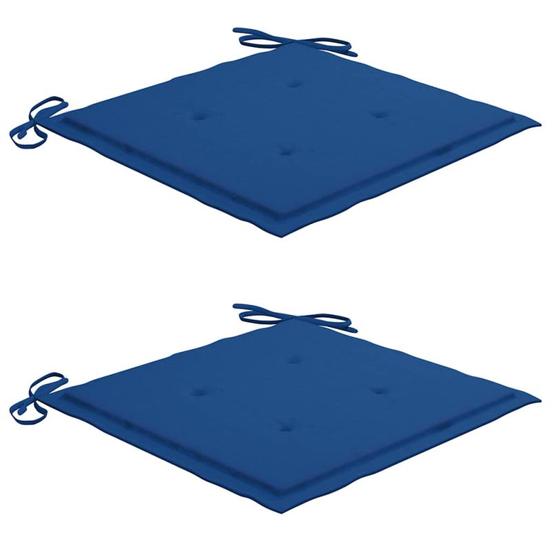 Градински столове, 2 бр, кралско сини възглавници, тик масив