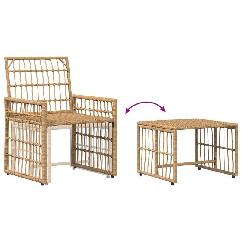 Този комплект градински мебели включва здрава прахово боядисана стомана, поли рътан и маса от масло-солидна акация, устойчива на метеорологични условия и UV лъчи. В него има столове и табуретки с полиестерови възглавници за удобно сядане в градини или на тераси. Неговият естествен дизайн идеално се комбинира с различни открити пространства. Компонентите могат да бъдат пренаредени за различни оформления. Почистването е лесно — просто избърсвате с влажна кърпа, а водонепроницаемото покритие е препоръчително по време на лошо време. Устойчиви материали: Комплектът е изработен с прахообразна стоманена конструкция и поли рътан, включва маса от масло-солидна акация. Материалите устояват на времето и UV щетите, запазвайки здравината си през сезоните. Включени възглавници: Столовете и табуретките са с полиестерови възглавници за комфорт. Дизайнът включва облегалки и подлакътници, които осигуряват удобно сядане на тераси, балкони или в градината. Естествен дизайн: Комбинацията от дървесни и плетени текстури придава естествен вид. Този стил е подходящ за разполагане в дворове, градински кътове или близо до басейни. Универсално приложение: Проектиран за различни среди, компонентите могат да се пренареждат за разнообразни оформления. Размерът му го прави идеален за социални събирания или за релакс на открито. Лесна поддръжка: Просто избърсвайте повърхностите с влажна кърпа, за да ги поддържате чисти. Използвайте водонепроницаемо покритие по време на лошо време, за да запазите материала и мебелите в добро състояние.