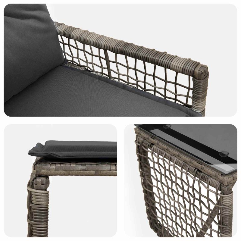 Този модерен комплект градински мебели е за тези, които искат да добавят стил и функционалност в градината или патията си. Идеален за пролетта и лятото, той предлага рустикален шарм, който подчертава естествената красота. Полиратанът придава стилен и спокоен вид, докато уеб тъкаеният модел добавя щипка елегантност на всяка открита обстановка. Представете си как се наслаждавате на съботни следобеди или вечерни партита, които могат да се издигнат на ново ниво с този комплект - перфектен за различни поводи! Привлекателност на естествени материали: С рамка от полиратан и повърхности от масивна акациева дървесина, комплектът съчетава естествена красота с модерен стил. Здравата конструкция осигурява дългогодишно използване, като запазва естетическия си вид. Изчерпателен компонентен дизайн: С завършен заден панел, подвижна седалка и прахово боядисана стоманена рамка, всеки елемент е подбран с грижа за качество и функция. Подлакътниците и трапецовидните крака осигуряват комфорт. Функционален комфорт и стил: Насладете се на удобството с възглавници, които осигуряват пухкаво изживяване. Гърбните възглавници добавят уют, съчетавайки практичност и елегантност. Външна универсалност: Комплектът е подходящ за всякакво открито ползване, предоставяйки комфорт на открито. Издържа на сезона, идеално е за пролетни и летни срещи. Лесна поддръжка: Поддържането е лесно – просто избърсвайте с влажна кърпа. За защита в лошо време покрийте с водоустойчиво покритие.
