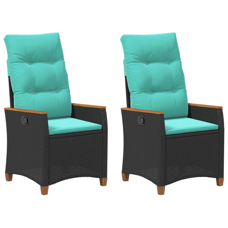 Лежанка за градина Черен и Туркоаз 64 x 57,5 x 112 см полиратан