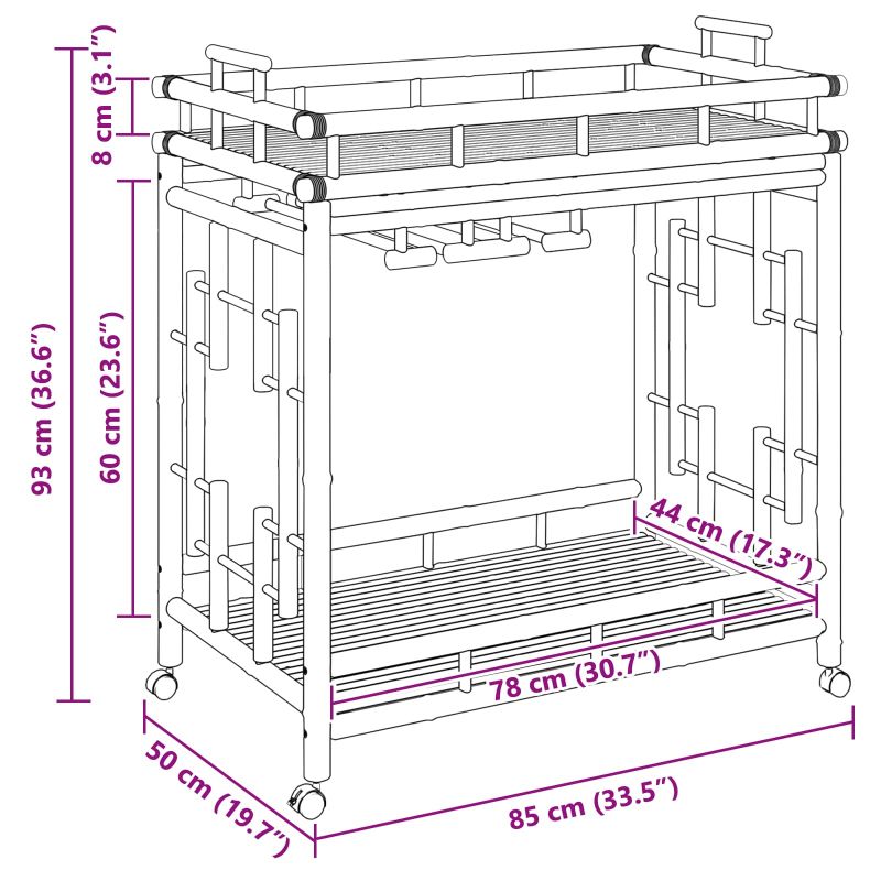 Начало Дом и градина Мебели Колички и островни шкафове Кухненски колички Количка за вино с колела Естествен 85 x 50 x 93 см Бамбук