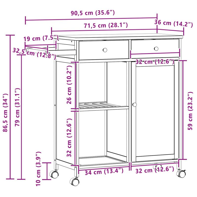 Кухненска количка с колела Естествен 90,5 x 36 x 86,5 см Бамбук