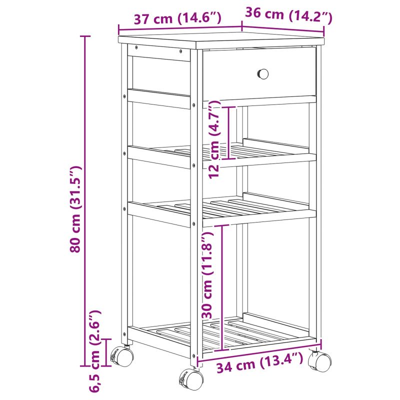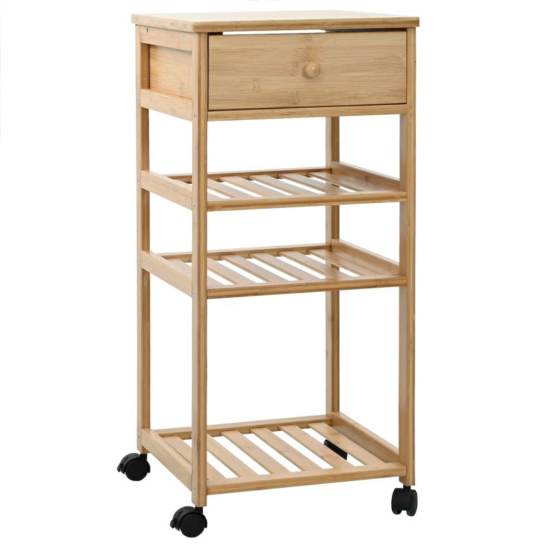 Кухненска количка с колела Естествен 37 x 36 x 80 см Бамбук