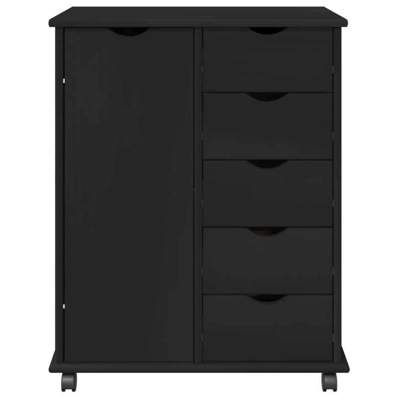 Плъзгащ кабинет с колело Черно 63,5 x 39 x 79 см Солиден бор