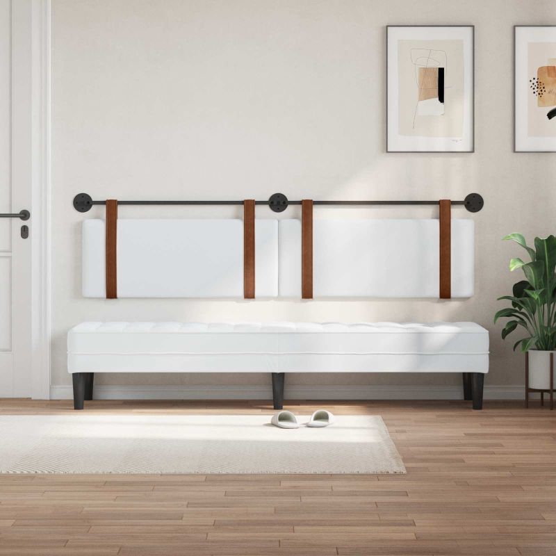 Начало Мебели Легла и аксесоари Табли за легла Висяща табла Монтиране на стена Бял 210 x 55 x 5 см Антично PU