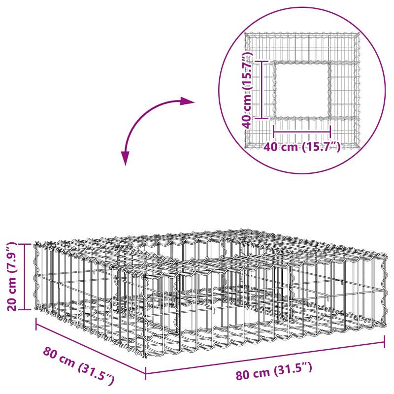 Габиона повдигнато легло Сребрист 80 x 80 x 20 cm