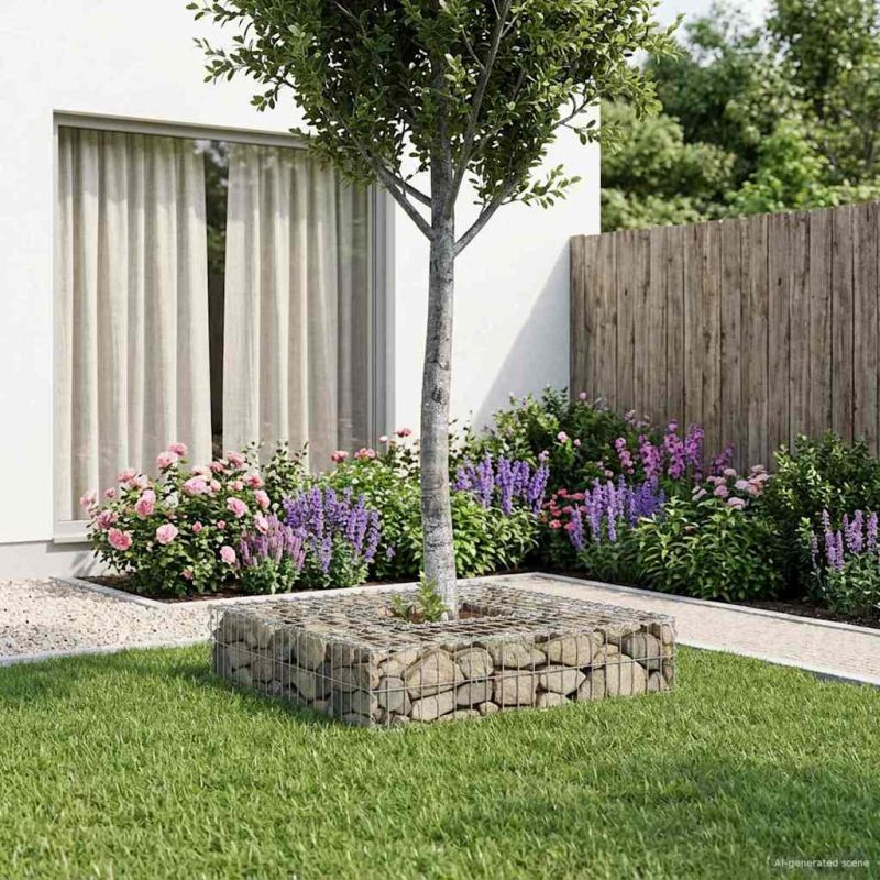 Габиона повдигнато легло Сребрист 100 x 100 x 20 cm