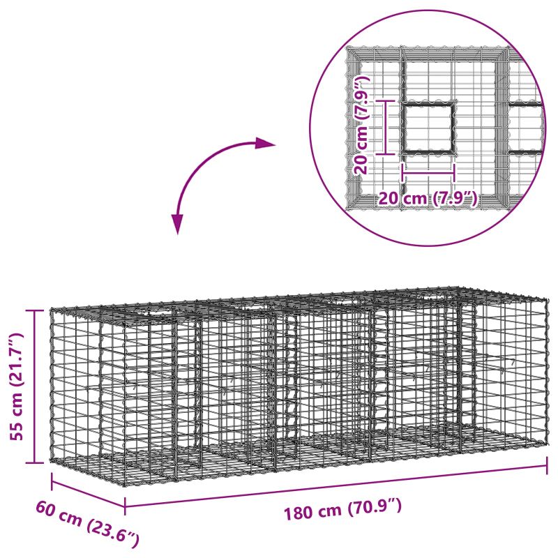 Габиона повдигнато легло Сребрист 180 x 60 x 55 см