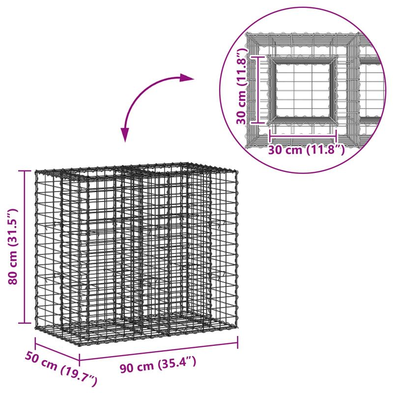 Габиона повдигнато легло Сребрист 90 x 50 x 80 см