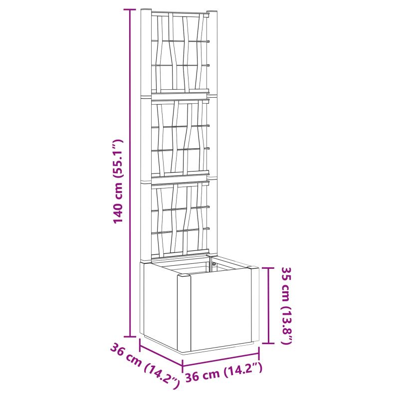 Тази саксия с решетка е чудесно попълнение за всяко открито пространство, комбинира функция и стил с модерния си дизайн. С чистите си линии и минималистичния вид е перфектна за вертикална градина. Полипропиленовата конструкция осигурява устойчивост на времето, което увеличава издръжливостта и естетическия вид, идеална за любителите на градинарството на открито. Полипропиленов материал: Изработена е от полипропилен, което осигурява дълготрайна употреба. Този материал е избран, защото устоява на дъжд и UV лъчи без да се влошава. Идеална е както за опитни, така и за начинаещи градинари, предлагайки практично решение за засаждане. Включва решетка: Интегрираната решетка предоставя перфектната поддръжка за катерещи растения - лози и цветя. Увеличава универсалността на саксията и добавя шенкестически вид, максимизирайки растежа. Незаменима за градини, тераси и палуби. Устойчиви на удари функции: Проектирана е да устои на леки удари, този саксийник запазва формата и привлекателността си във времето. Издръжлива на условия на открито, тя дава спокойствие на градинарите, докато се грижат за растенията. Вградени дренажни отвори: Оптимизира здравето на растенията, предотвратявайки натрупването на влага. Дренажните отвори позволяват на излишната вода да се оттича, което подкрепя здрави корени и намалява риска от заболявания. Лесно поддържане: Изисква само влажна кърпа за почистване. Спестява време за поддръжка, което прави занаята по-приятен. Удобството при поддръжка е важно за тези, които искат да се наслаждават на заниманията си в градината.