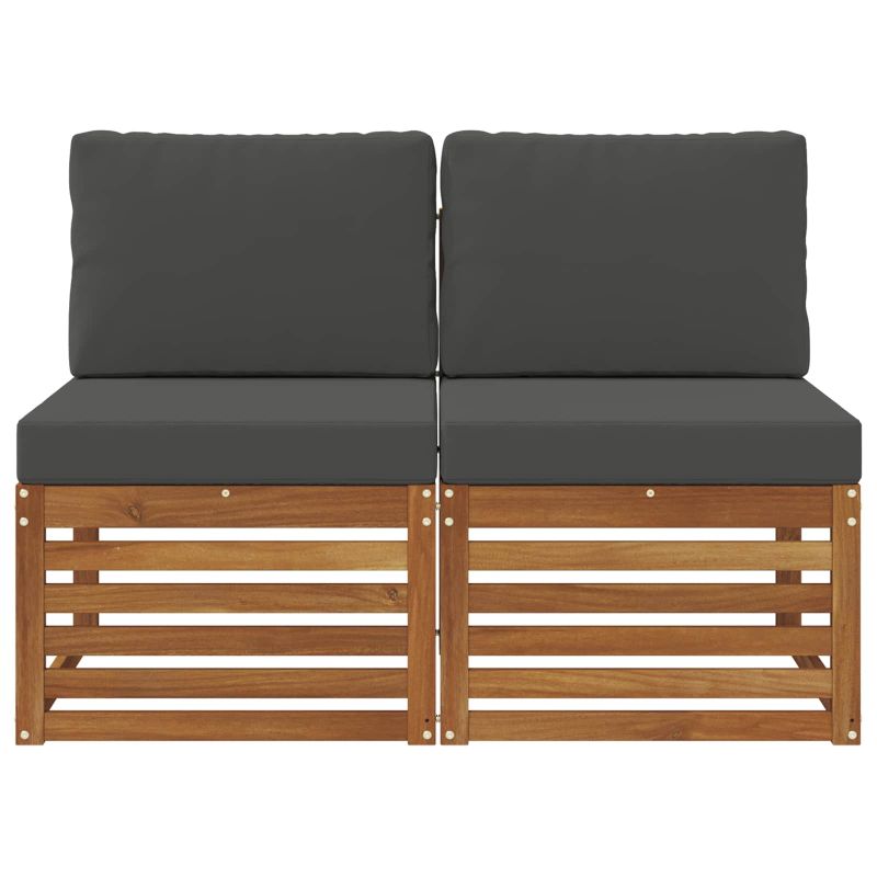 2 Брой Среден диван за открито Солидно акациево дърво Естествен