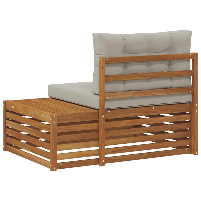 Тази външна мебел се вписва без усилие в пространството на всяка градина, предлагайки модерен стил, който съчетава простота и практичност. Изработена от здраво масивно акациево дърво, чистите линии я правят отличен акцент за вашите открити пространства. Създадена да устои на лоши метеорологични условия, тази универсална мебел лесно се нагажда към различни външни настройки, като добавя визуална привлекателност на пространството. Масивна акациева дървесина: Изработен изцяло от издръжливо масивно акациево дърво, този диван предлага отлична дълговечност и устойчивост на външни условия. Естественият вид на дървото добавя елегантност, направи го стилен и практичен избор за открито. Универсален дизайн: Всеки модул е създаден с мисъл за универсалност, позволявайки му да се адаптира лесно към различни външни оформления и нужди. Гъвкавият дизайн го прави подходящ за различни обстановки и поводи. Модерен слънат дизайн: Проектиран за модерни градински и терасни пространства, слънатият дизайн подобрява въздушния поток, позволявайки на дървото да изсъхне бързо след дъжд, докато осигурява дълготрайна комфорт и издръжливост. Функционалност за външно ползване: Създаден за употреба навън, този диван устоява на променливите климатични условия, като запазва дълготрайна красота и функционалност. Идеален е за градини, патио и други външни пространства. Лесно поддържане: За да запазиш доброто му състояние, просто избърши повърхността с влажна кърпа, за да махнеш праха и мръсотията. Тази лесна поддръжка помага да се запази външния вид с времето.