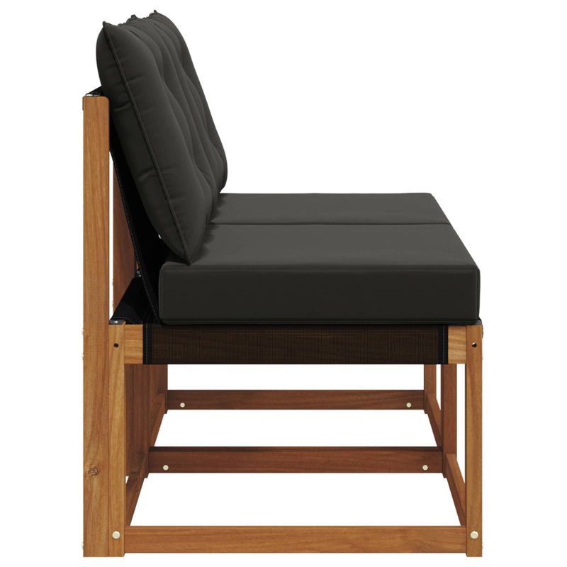 Този комплект мебели за открито е наистина уникален, преобразувайки всяка тераса, балкон или градина в модерен и комфортен кът за отдих. Идеални за почивка или за събирания на открито, те предлагат множество настройки, които пасват на всякакво пространство. С внимание към детайла, комплектът ще придаде визуална привлекателност на всяко място, осигурявайки спокойствие и елегантност. Масивна акациева дървесина: Здрав и устойчив материал за външна употреба, предлага надеждност и дългодишна употреба. Натуралният декор е перфектен за всяка градинска обстановка. Удобни възглавници: Всеки модул е с възглавници от качествен полиестер за комфорт и дълготрайност. Материята е мека и устойчива на външна употреба. Възглавниците са с лек фоам за комфорт при продължителни седящи. Модулен и гъвкав дизайн: Осигурява адаптивност за всякакви пространства и нужди. Можете да направите перфектна конфигурация, независимо дали за малко място или по-големи събирания. Устойчив на времето: Проектиран да издържа на условията навън, мебелите са устойчиви на дъжд и слънце. Дизайнът позволява бързо изсъхване, запазвайки здравината и комфорта. Устойчив на избледняване: Специалната Textilene материя запазва ярките цветове с времето, дори при пряка слънчева светлина. Тази устойчива повърхност гарантира дълготрайност, дори на открито.