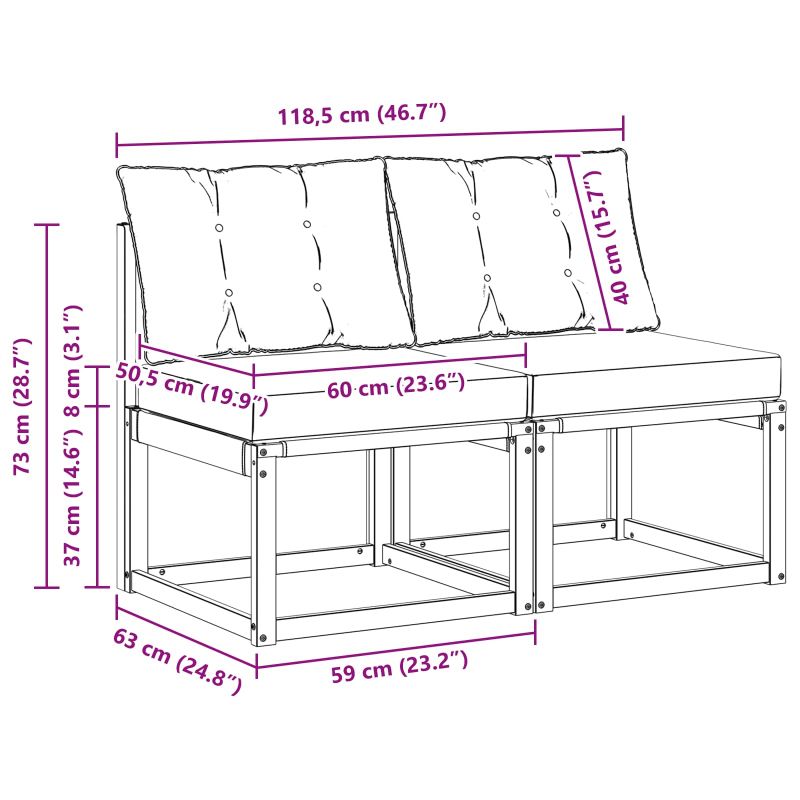 • 2 x Възглавница за сядане: 60 x 50,5 x 8 см (ДxШxВ)