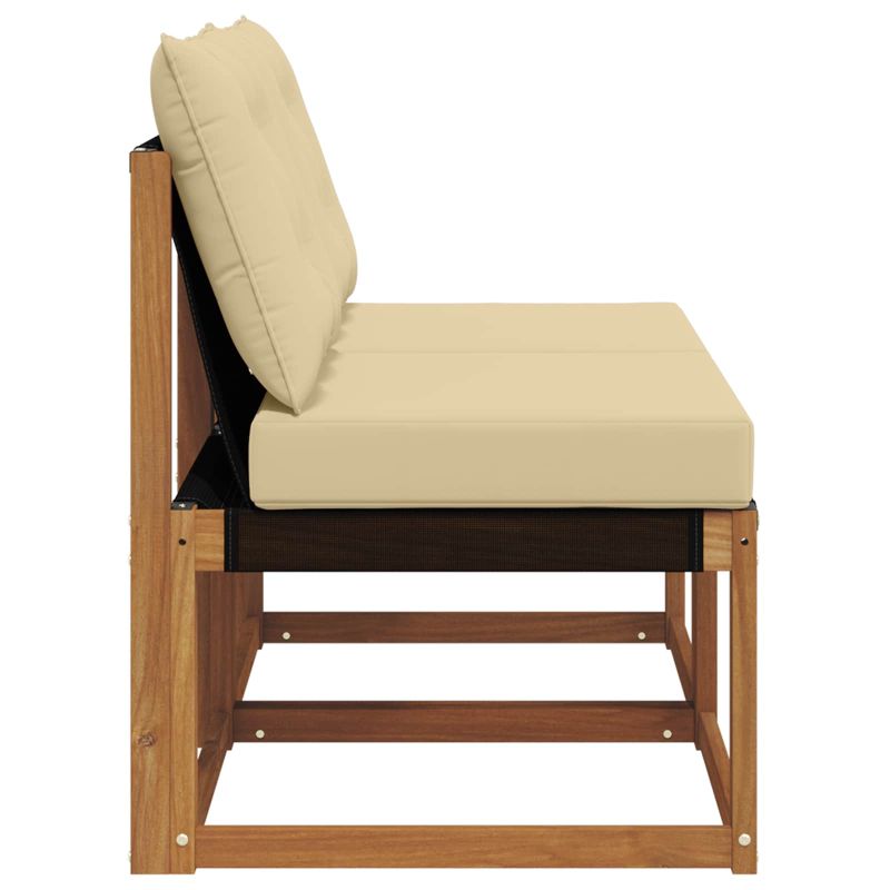 Този комплект мебели за открито е наистина уникален, преобразувайки всяка тераса, балкон или градина в модерен и комфортен кът за отдих. Идеални за почивка или за събирания на открито, те предлагат множество настройки, които пасват на всякакво пространство. С внимание към детайла, комплектът ще придаде визуална привлекателност на всяко място, осигурявайки спокойствие и елегантност. Масивна акациева дървесина: Здрав и устойчив материал за външна употреба, предлага надеждност и дългодишна употреба. Натуралният декор е перфектен за всяка градинска обстановка. Удобни възглавници: Всеки модул е с възглавници от качествен полиестер за комфорт и дълготрайност. Материята е мека и устойчива на външна употреба. Възглавниците са с лек фоам за комфорт при продължителни седящи. Модулен и гъвкав дизайн: Осигурява адаптивност за всякакви пространства и нужди. Можете да направите перфектна конфигурация, независимо дали за малко място или по-големи събирания. Устойчив на времето: Проектиран да издържа на условията навън, мебелите са устойчиви на дъжд и слънце. Дизайнът позволява бързо изсъхване, запазвайки здравината и комфорта. Устойчив на избледняване: Специалната Textilene материя запазва ярките цветове с времето, дори при пряка слънчева светлина. Тази устойчива повърхност гарантира дълготрайност, дори на открито.
