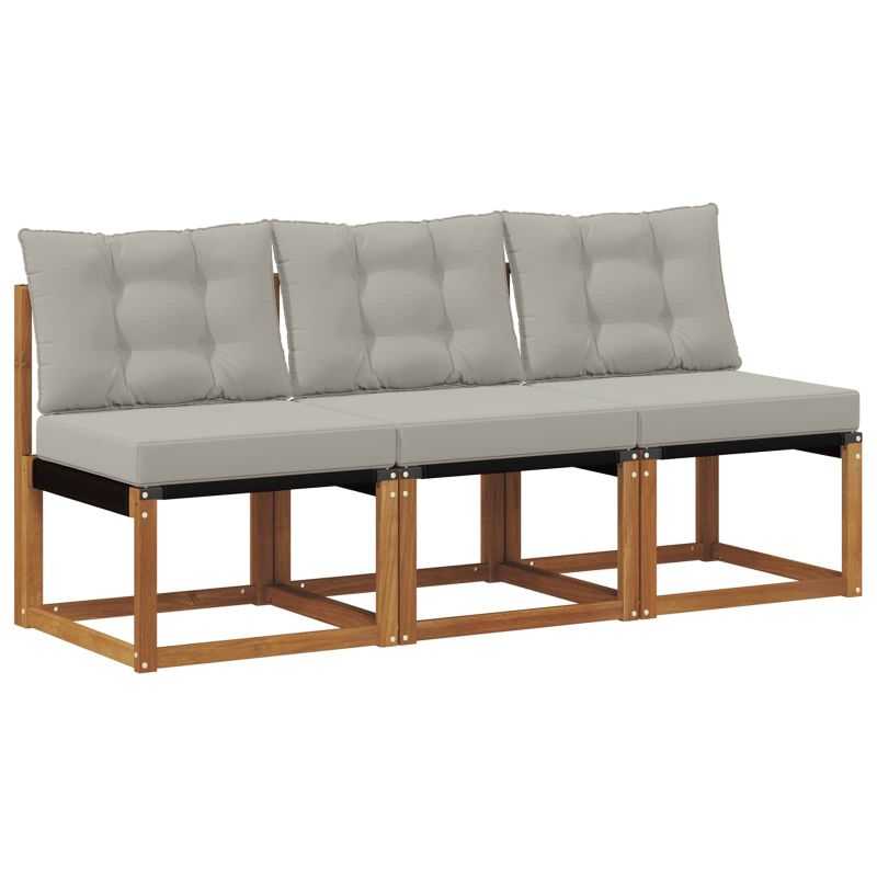 Този комплект мебели за открито е наистина уникален, преобразувайки всяка тераса, балкон или градина в модерен и комфортен кът за отдих. Идеални за почивка или за събирания на открито, те предлагат множество настройки, които пасват на всякакво пространство. С внимание към детайла, комплектът ще придаде визуална привлекателност на всяко място, осигурявайки спокойствие и елегантност. Масивна акациева дървесина: Здрав и устойчив материал за външна употреба, предлага надеждност и дългодишна употреба. Натуралният декор е перфектен за всяка градинска обстановка. Удобни възглавници: Всеки модул е с възглавници от качествен полиестер за комфорт и дълготрайност. Материята е мека и устойчива на външна употреба. Възглавниците са с лек фоам за комфорт при продължителни седящи. Модулен и гъвкав дизайн: Осигурява адаптивност за всякакви пространства и нужди. Можете да направите перфектна конфигурация, независимо дали за малко място или по-големи събирания. Устойчив на времето: Проектиран да издържа на условията навън, мебелите са устойчиви на дъжд и слънце. Дизайнът позволява бързо изсъхване, запазвайки здравината и комфорта. Устойчив на избледняване: Специалната Textilene материя запазва ярките цветове с времето, дори при пряка слънчева светлина. Тази устойчива повърхност гарантира дълготрайност, дори на открито.