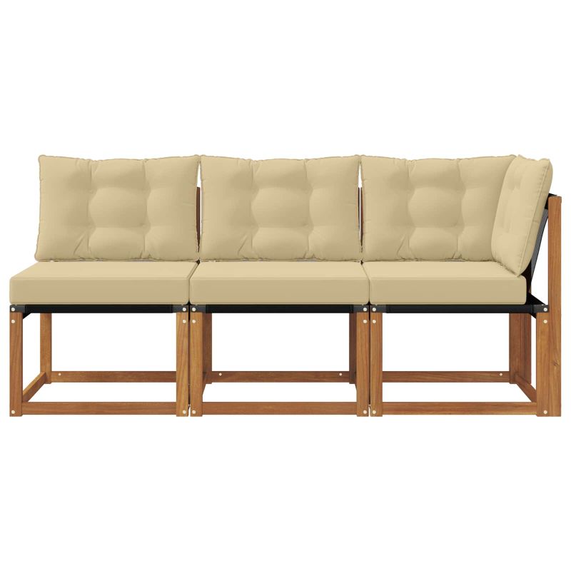Този комплект мебели за открито е наистина уникален, преобразувайки всяка тераса, балкон или градина в модерен и комфортен кът за отдих. Идеални за почивка или за събирания на открито, те предлагат множество настройки, които пасват на всякакво пространство. С внимание към детайла, комплектът ще придаде визуална привлекателност на всяко място, осигурявайки спокойствие и елегантност. Масивна акациева дървесина: Здрав и устойчив материал за външна употреба, предлага надеждност и дългодишна употреба. Натуралният декор е перфектен за всяка градинска обстановка. Удобни възглавници: Всеки модул е с възглавници от качествен полиестер за комфорт и дълготрайност. Материята е мека и устойчива на външна употреба. Възглавниците са с лек фоам за комфорт при продължителни седящи. Модулен и гъвкав дизайн: Осигурява адаптивност за всякакви пространства и нужди. Можете да направите перфектна конфигурация, независимо дали за малко място или по-големи събирания. Устойчив на времето: Проектиран да издържа на условията навън, мебелите са устойчиви на дъжд и слънце. Дизайнът позволява бързо изсъхване, запазвайки здравината и комфорта. Устойчив на избледняване: Специалната Textilene материя запазва ярките цветове с времето, дори при пряка слънчева светлина. Тази устойчива повърхност гарантира дълготрайност, дори на открито.