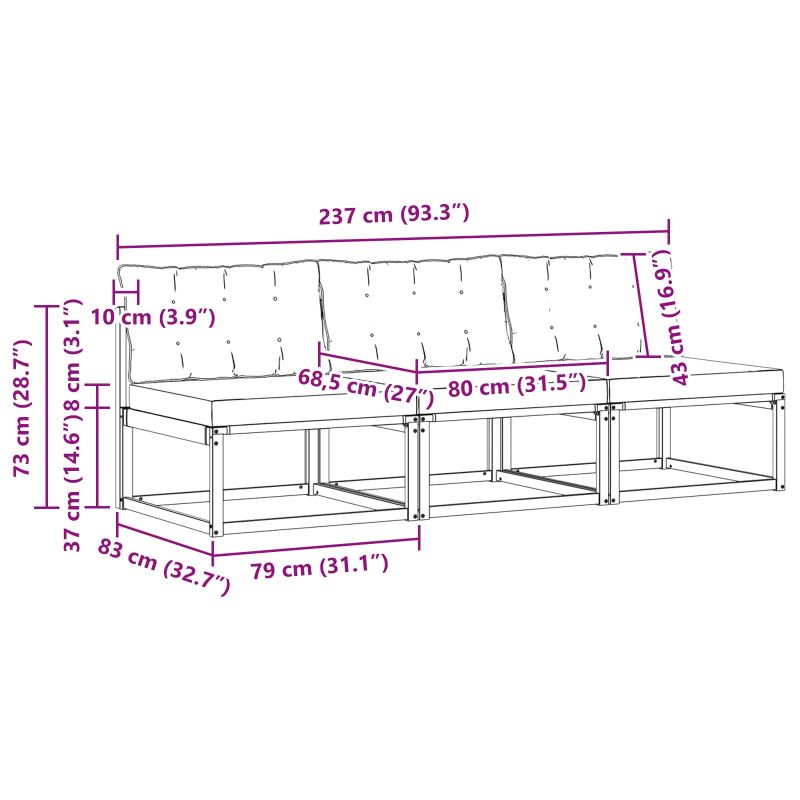 3 Брой Среден диван за открито Солидно акациево дърво Естествен