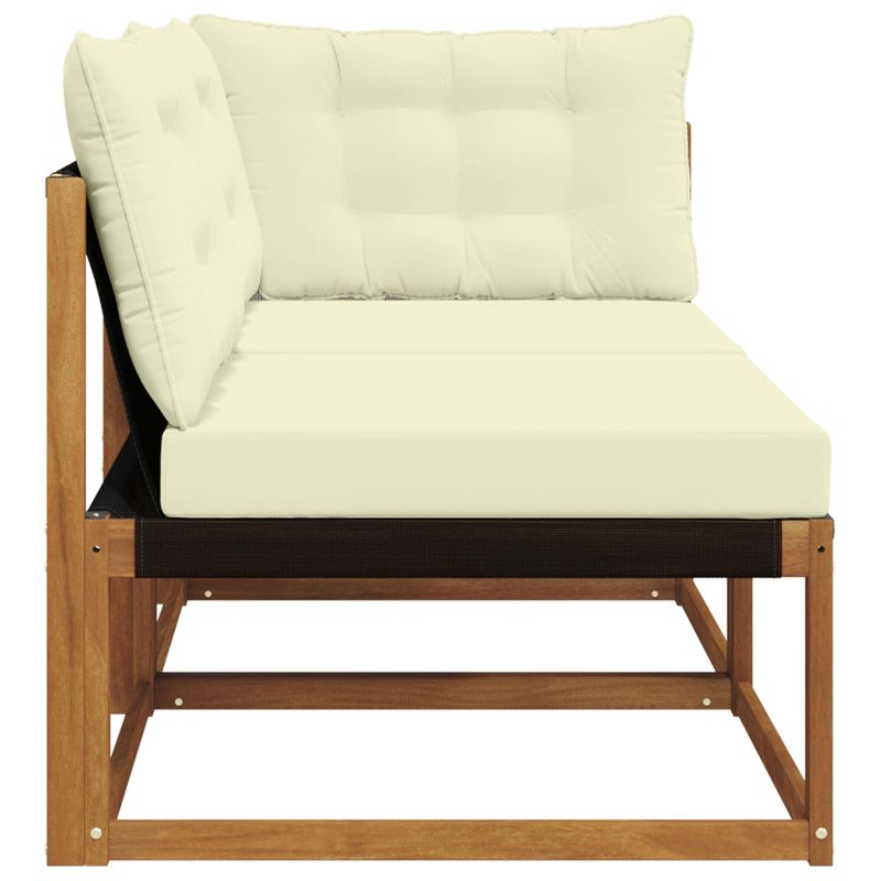 Този комплект мебели за открито преобразява всяка тераса, балкон или градина в стилно и удобно място за релакс, идеално за почивка или социализиране. С модерен и минималистичен дизайн, той предлага гъвкаво разположение, подходящо за различни открити обстановки. Изработен с внимание към детайлите, комплектът подобрява визуалната привлекателност на пространството и осигурява моменти на спокойствие и елегантност. Солидна акациева дървесина: Здравият акациев материал е устойчив на атмосферни условия и предлага надеждност и дълготрайност. Натуралният нюанс на дървото добре се вписва в открития декор, като е функционален и стилен избор за вашата тераса. Удобни възглавници: Всяка част идва с възглавници от полиестер, които осигуряват комфорт и дълговечност. Тъканта е мека и устойчива на открити условия. Съчетава се с пяна за оптимален комфорт при дълги сесии. Модулярен и гъвкав дизайн: Модулният формат позволява различни подредби в зависимост от пространството и нуждите. Можете да създадете идеалното оформление, независимо дали е компактно или по-голямо за социални събирания. Устойчив на атмосферни условия: Проектиран за външни условия, мебелите предлагат устойчивост на различни атмосферни влияния. Повърхността позволява въздушен поток и помага на материала да изсъхне бързо след дъжд, запазвайки комфорта и издръжливостта. Устойчив материал: Тъканта Textilene е проектирана да не избледнява, дори при слънчево излагане, като запазва визията си с времето. Неговата издръжлива повърхност е устойчива на избледняване и осигурява дълготрайни резултати, дори навън.