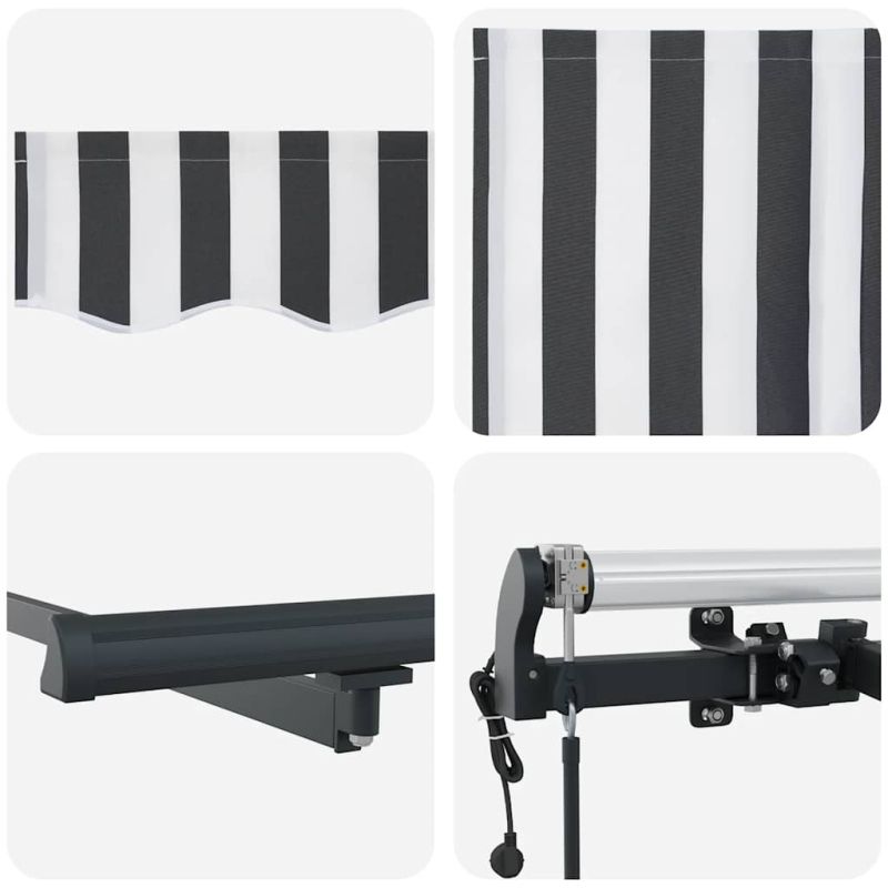 Начало Дом и градина Двор и градина Живот на открито Навеси за врати и прозорци Автоматично прибираща се тента, антрацит и бял, 300x250 см
