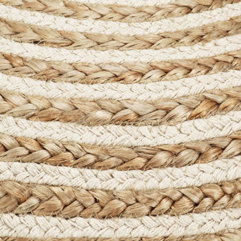 Седнете или поставете краката си върху пуфа и се отпуснете! Нашият модерен и шикозен пуф ще бъде удобно и декоративно допълнение към домашния декор. Табуретката е ръчно изработена от оплетени ленти юта и е напълнена с топки от EPS пяна, което я прави много удобна. Поставете пуфа пред диван или фотьойл и той със сигурност ще допринесе за уютната атмосфера във всяка стая!
