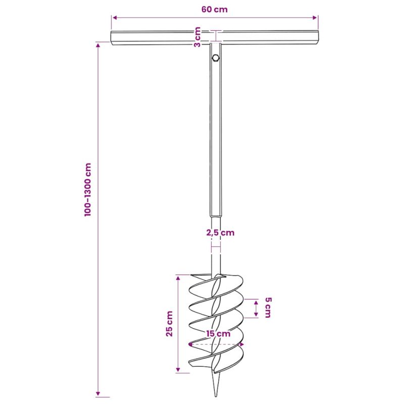 Уморявате ли се да копаете дупки в градината, когато трябва да садите? С нашето свредло с дръжка ще изкопавате дупките с лекота без да се навеждате и дори без да цапате ръцете си! Освен за изкопаването на дупки това свредло ще ви е от помощ при компостиране, смесване на почви и торове или пробиване на дупки за клинове за торове.Изработено от супер здрава стомана, свредлото е с множество приложения. В допълнение има дръжка, която осигурява допълнително удобство.Тази удължаваща дръжка се използва за удължаване на дължината на съответстващото свредло и постигане на определени цели. Можете лесно да сглобите удължаващата дръжка със свредлото посредством включените в доставката винтове.Доставката включва свредло за земя, дръжка, 12 броя удължаващи дръжки и винтове.