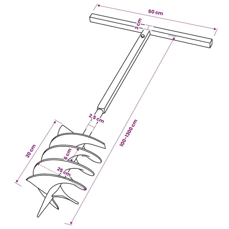 Уморявате ли се да копаете дупки в градината, когато трябва да садите? С нашето свредло с дръжка ще изкопавате дупките с лекота без да се навеждате и дори без да цапате ръцете си! Освен за изкопаването на дупки това свредло ще ви е от помощ при компостиране, смесване на почви и торове или пробиване на дупки за клинове за торове.Изработено от супер здрава стомана, свредлото е с множество приложения. В допълнение има дръжка, която осигурява допълнително удобство.Тази удължаваща дръжка се използва за удължаване на дължината на съответстващото свредло и постигане на определени цели. Можете лесно да сглобите удължаващата дръжка със свредлото посредством включените в доставката винтове.Доставката включва свредло за земя, дръжка, 12 броя удължаващи дръжки и винтове.
