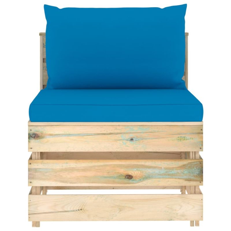 Секционен среден диван с възглавници, зелено импрегнирано дърво