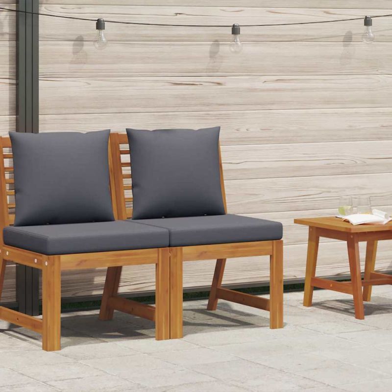 Начало Дом и градина Мебели Външни мебели Външно обзавеждане Елементи за градински секционни дивани Модулен среден диван тъмносиви възглавници акациево дърво масив