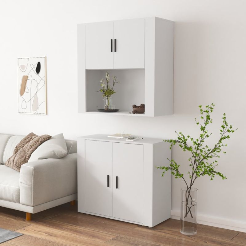 Търсите стилен висок шкаф? Този висок шкаф добавя уникален чар към вашия интериор! Издържлив материал: Инженерната дървесина е с изключително качество с гладка повърхност и се отличава със здравина, стабилност и устойчивост на влага.Достатъчно място за съхранение: Сайдбордът предоставя достатъчно място за съхранение, където да държите различни ваши вещи добре организирани и леснодостъпни.Функция за монтиране на стена: Шкафът за съхранение може да се монтира на стената в горната част на бюфета, за да се създаде висок шкаф, което спестява място на пода. По този начин можете да увеличите максимално пространството на пода и да поддържате ред и чистота. Добре е да се знае:За да бъде сглобяването възможно най-лесно, всеки продукт се доставя с ръководство.Винтовете и дюбелите за вътрешната стена не са включени. Съветваме ви да намерите и използвате винтове и дюбели, подходящи специално за вашите стени. Ако не сте сигурни, можете да се консултирате с професионалист. Моля, прочетете и следвайте всяка стъпка от инструкциите. Внимание:За предотвратяване на преобръщане този продукт трябва да се използва с предоставения анкер за стена.