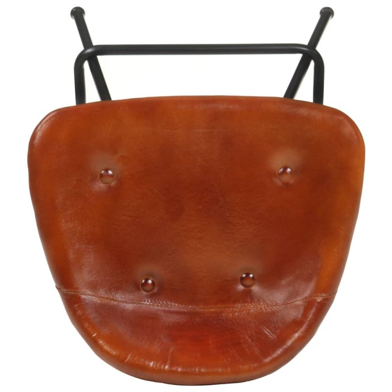Тези меки и удобни табуретки от естествена кожа имат емблематичен външен вид, съобразен с индустриалния стил, който е актуален в момента. Те ще изглеждат чудесно не само в ресторанти или барове, но и във вашия хол или трапезария у дома. Седалките от естествена кожа са меки на допир и осигуряват удобно преживяване при седене. Желязната рамка с прахово покритие допринася за тяхната здравина. Бар столовете са лесни за местене, за да отговарят на всякакви подредби. Максимално 110 кг на седалка. Съобразете се с риска от открит огън и други източници на силна топлина в близост до продукта.