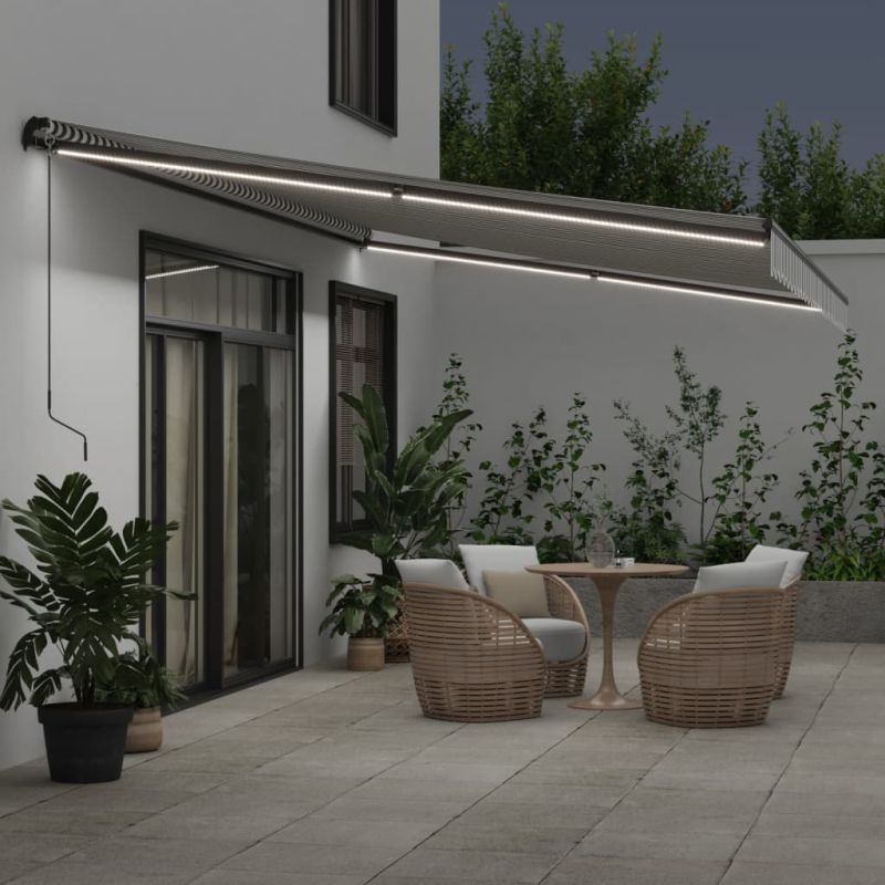 Начало Дом и градина Двор и градина Живот на открито Навеси за врати и прозорци Ръчно прибираща се тента с LED, антрацит и бял, 600x350 см