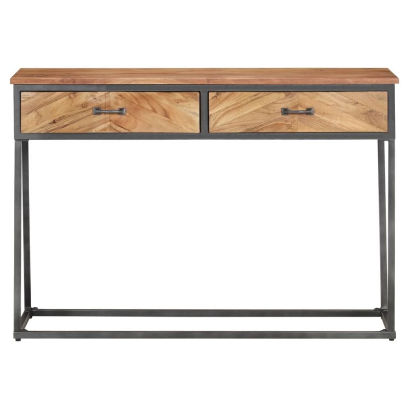 Внесете усещане за индустриален чар в домашния си декор с тази стилна дървена конзолна маса! Тази холна маса е изработена от масивна акациева дървесина, което я прави здрава и стабилна. Изработката и красивите дървесни шарки правят всяка мебел уникална и малко по-различна от следващата. Масата за под огледало е снабдена с достатъчно място за съхранение, така че можете да показвате или съхранявате всички предмети, които искате да бъдат добре организирани. Нещо повече, стоманената основа допринася за нейната здравина. Важна забележка: Шарките по дървото и цветовете варират при различните мебели, което прави всеки дървен шкаф уникален.