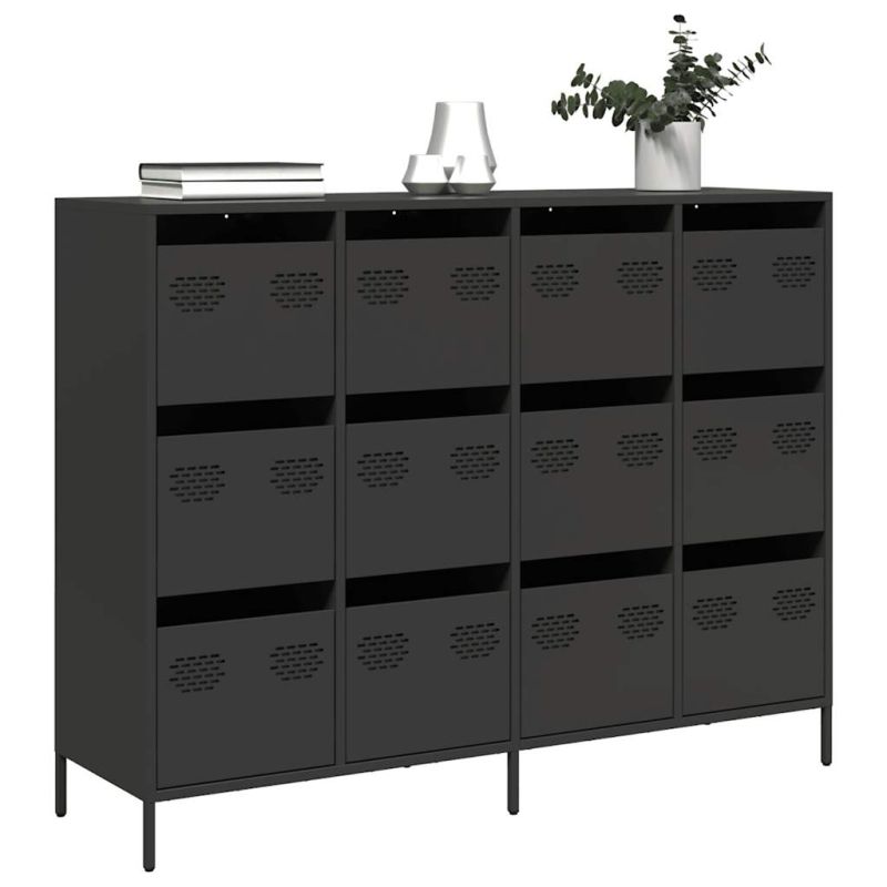 Бюфет, черен, 135x39x103,5 см, студеновалцувана стомана
