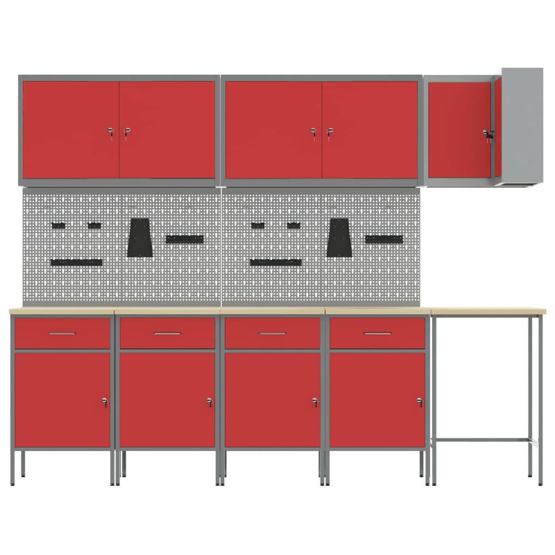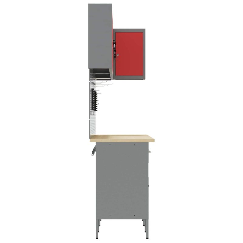 Комплект работни шкафове с чекмедже с рафт 12 pcs Червен и сив