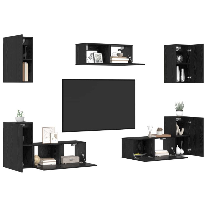 Комплект ТВ шкаф 7 pcs Черния дъб Инженерно дърво