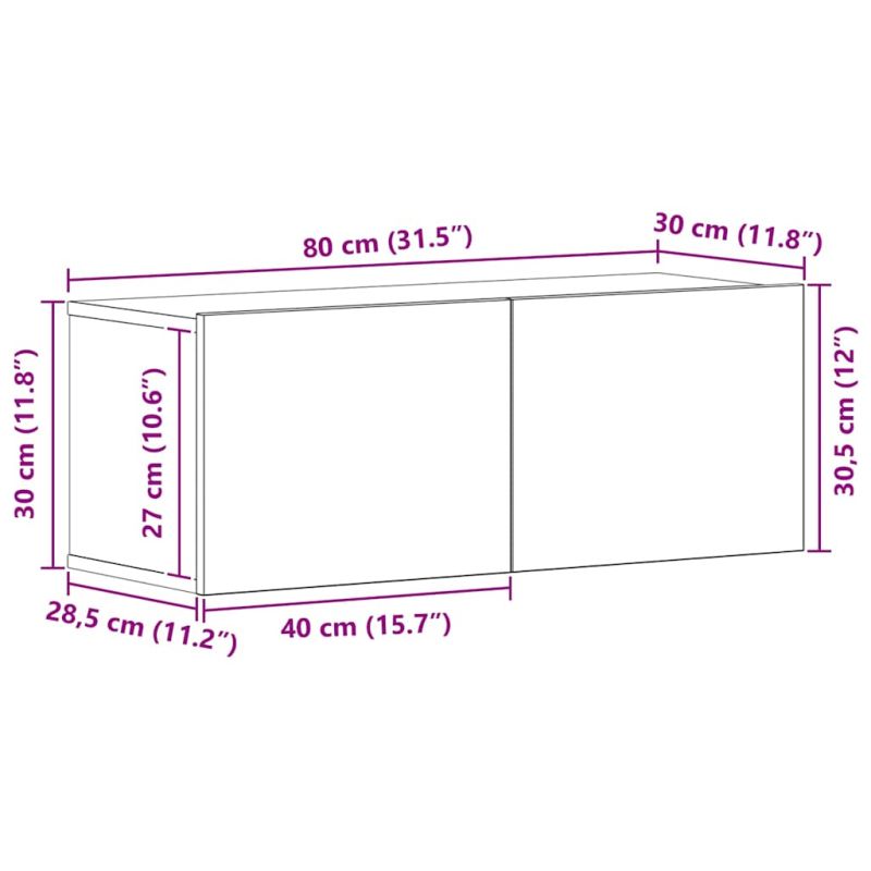 • 2 x ТВ шкаф: 30,5 x 30 x 60 см (ШxДxВ)