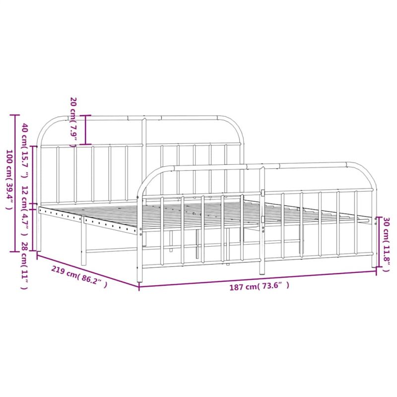 Метална рамка за легло с горна и долна табла, черна, 183x213 см