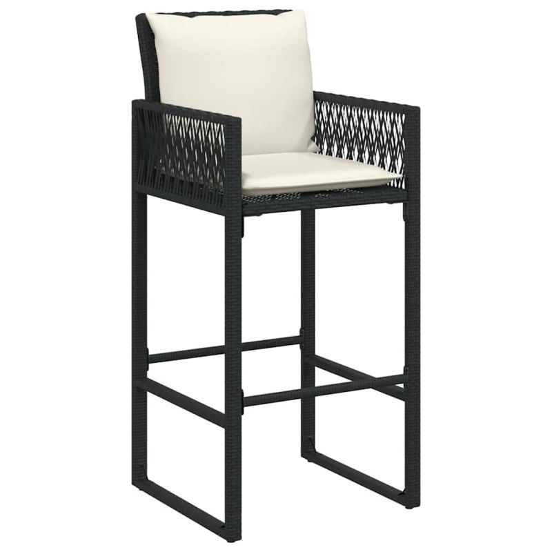 Градински бар табуретки с възглавници, 2 бр, черен полиратан