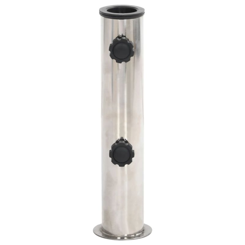 Тази основа за чадър предлага здрава и надеждна основа, за да гарантира, че вашият чадър остава стабилен и изправен. Здрав и издръжлив материал: Основата на чадъра е изработена от издръжлива неръждаема стомана, осигуряваща устойчивост на корозия и ръжда и години надеждна употреба.Спестяващ място и преносим: Благодарение на компактния си дизайн, тази основа за чадър заема по-малко място на вашата тераса или вътрешен двор. Освен това е лека за лесно транспортиране.Съвместим с различни размери на стълбове: Диаметърът на тръбата може лесно да се регулира с помощта на врътка за затягане, за да побере стълбове на чадър с диаметър 38 и 48 мм. Добре е да се знае:Тази основа за чадър не е подходяща за монтиране на големи, тежки чадъри или колове за флагове на декинга и вътрешния двор.