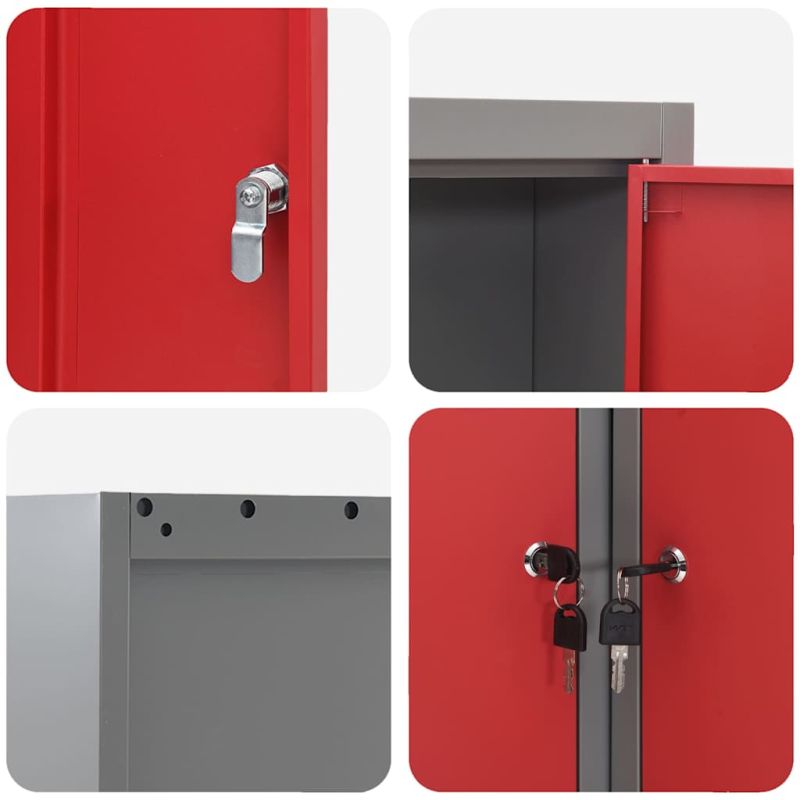 Шкаф за инструменти с рафт Червен и сив 55 x 55 x 55 см