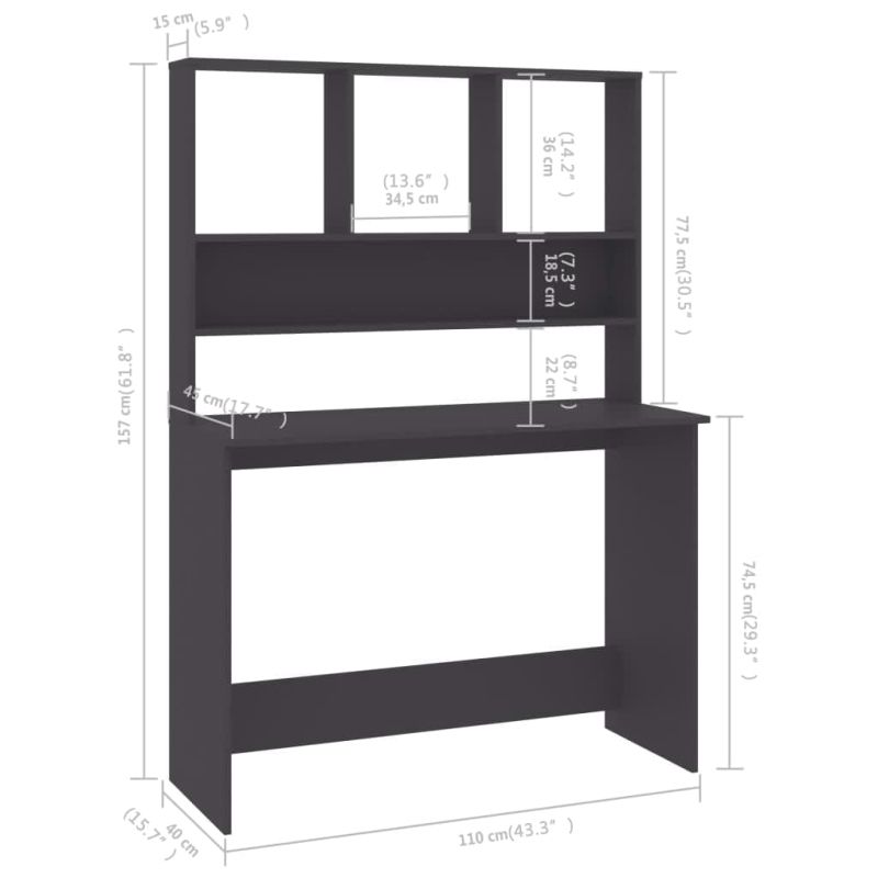 Бюро с рафтове, сиво, 110x45x157 см, ПДЧ