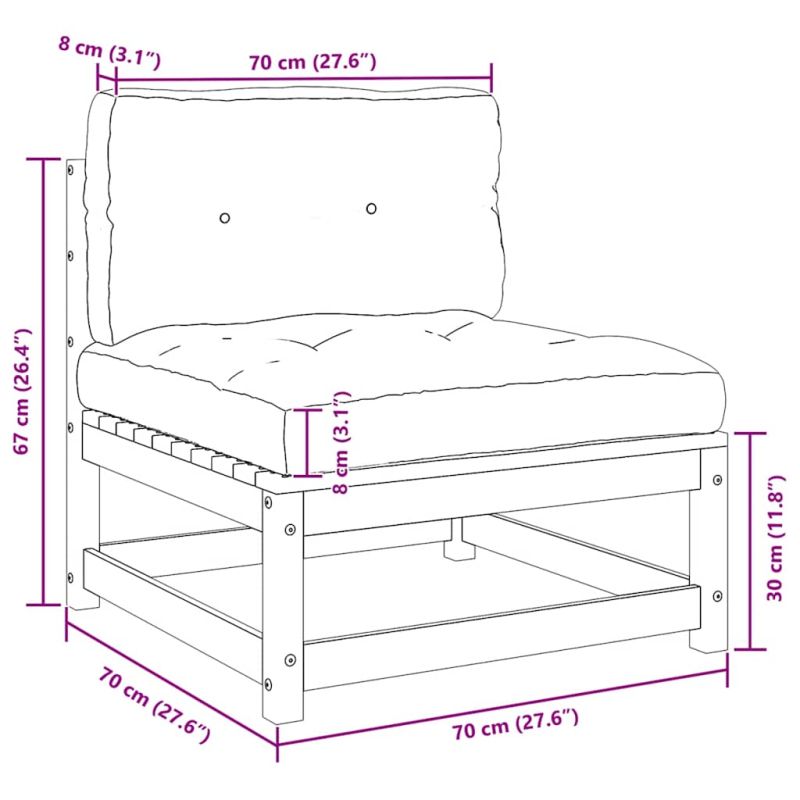 Този градински комплект за отдих е отличен избор за релакс и наслада на времето, за дрямка или разговори със семейството или приятелите ви. Градинският лаундж комплект е изработен от масивна борова дървесина, което го прави здрав и стабилен. Възглавниците добавят допълнителен комфорт. Можете да го комбинирате с други модулни елементи, за да създадете собствени конфигурации на градинска зона за отдих! Забележка: За да удължите живота на вашите градински мебели, ви препоръчваме да ги защитите с водоустойчиво покритие. Максимално 110 кг на седалка.