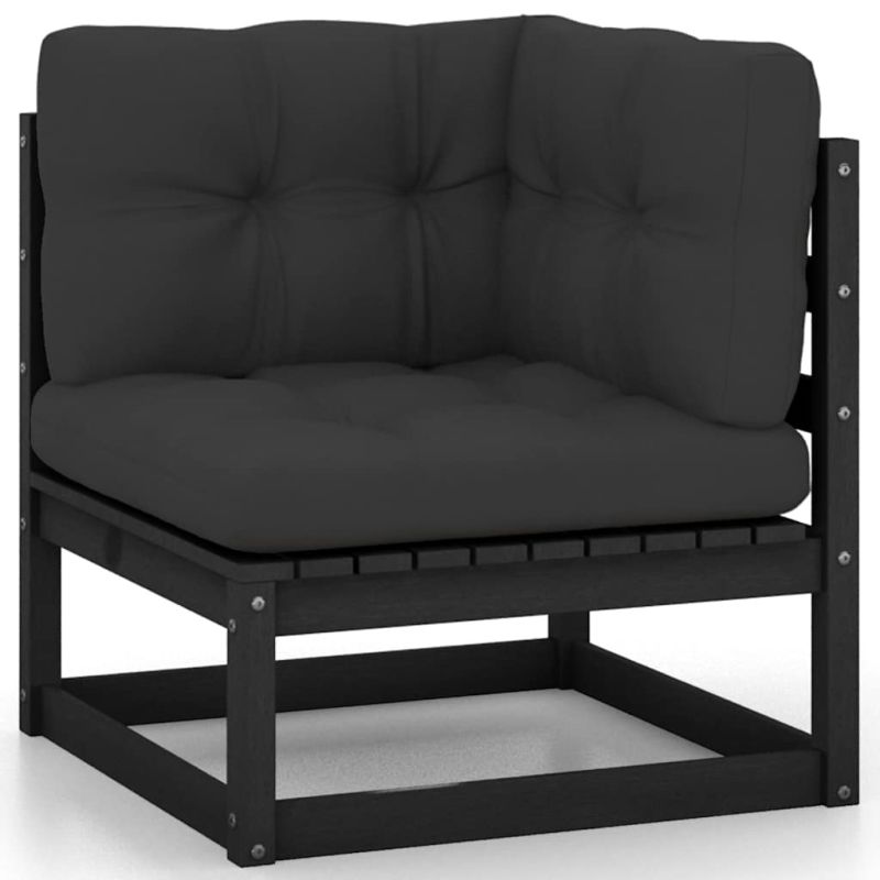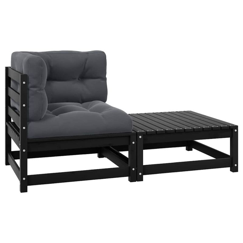 Градински комплект от 2 части, с възглавници, черен, бор масив