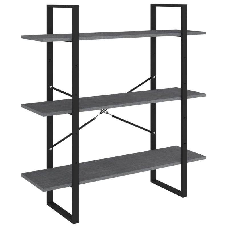 3-етажна библиотека, сива, 100x30x105 см, борово дърво масив