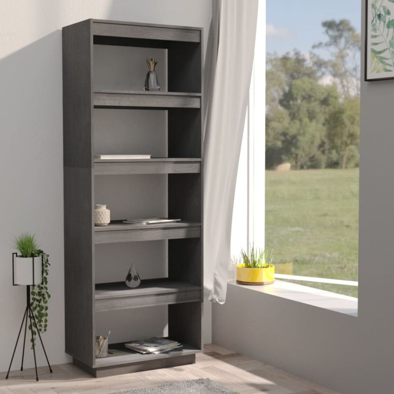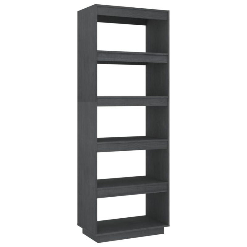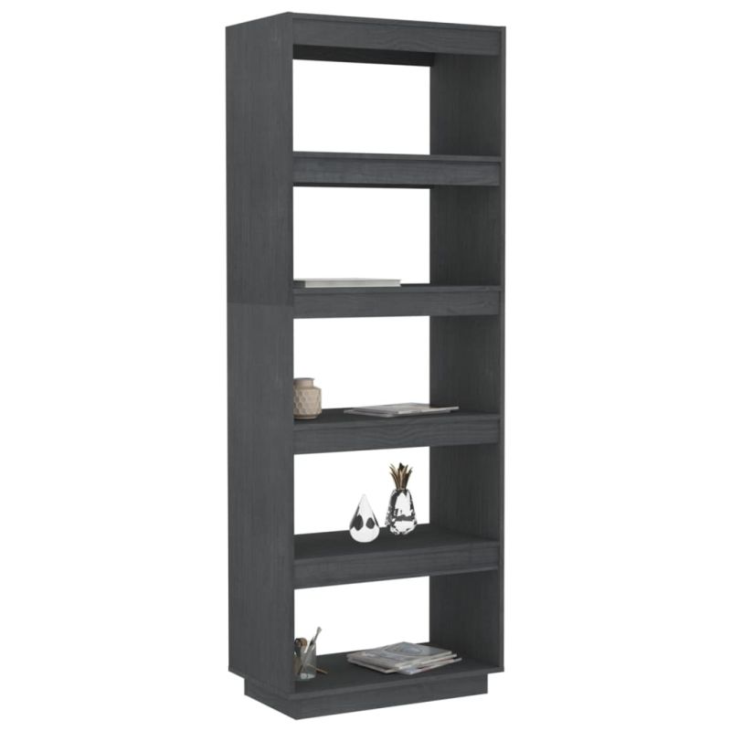 Библиотека/разделител за стая, сива, 60x35x167 см, бор масив